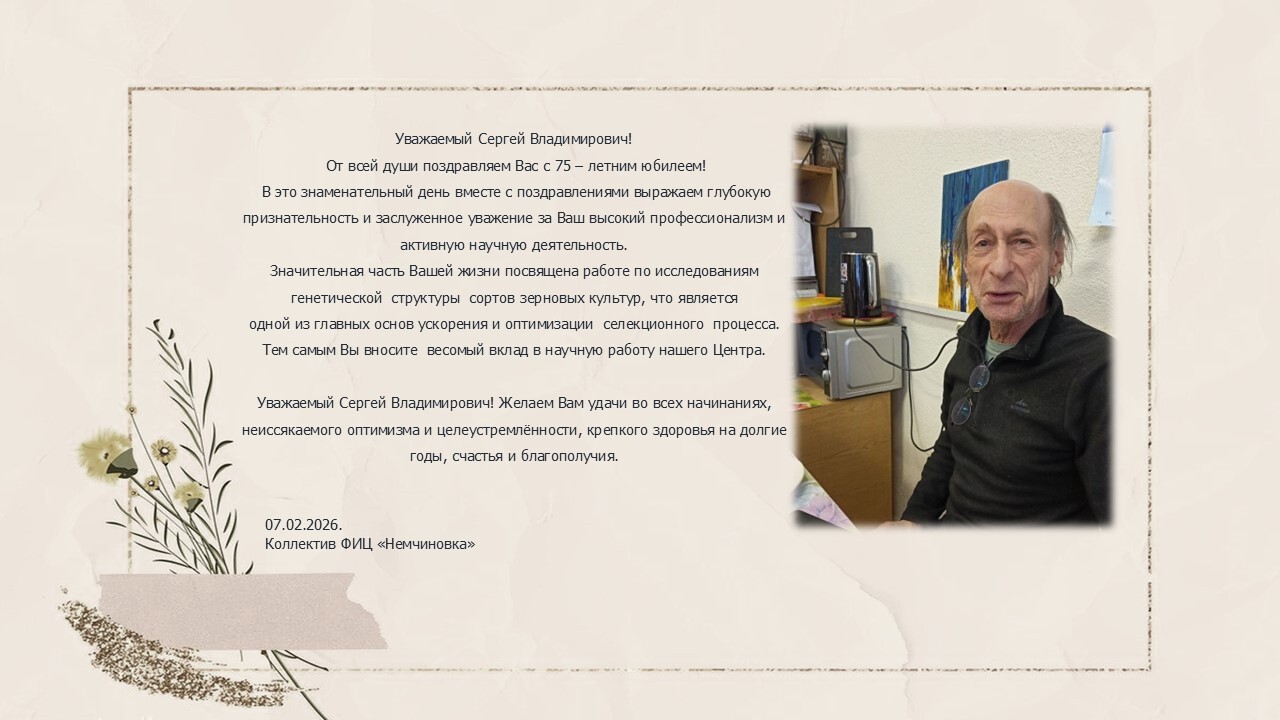 Уважаемый Сергей Владимирович! Примите наши искренние поздравления с юбилеем!
