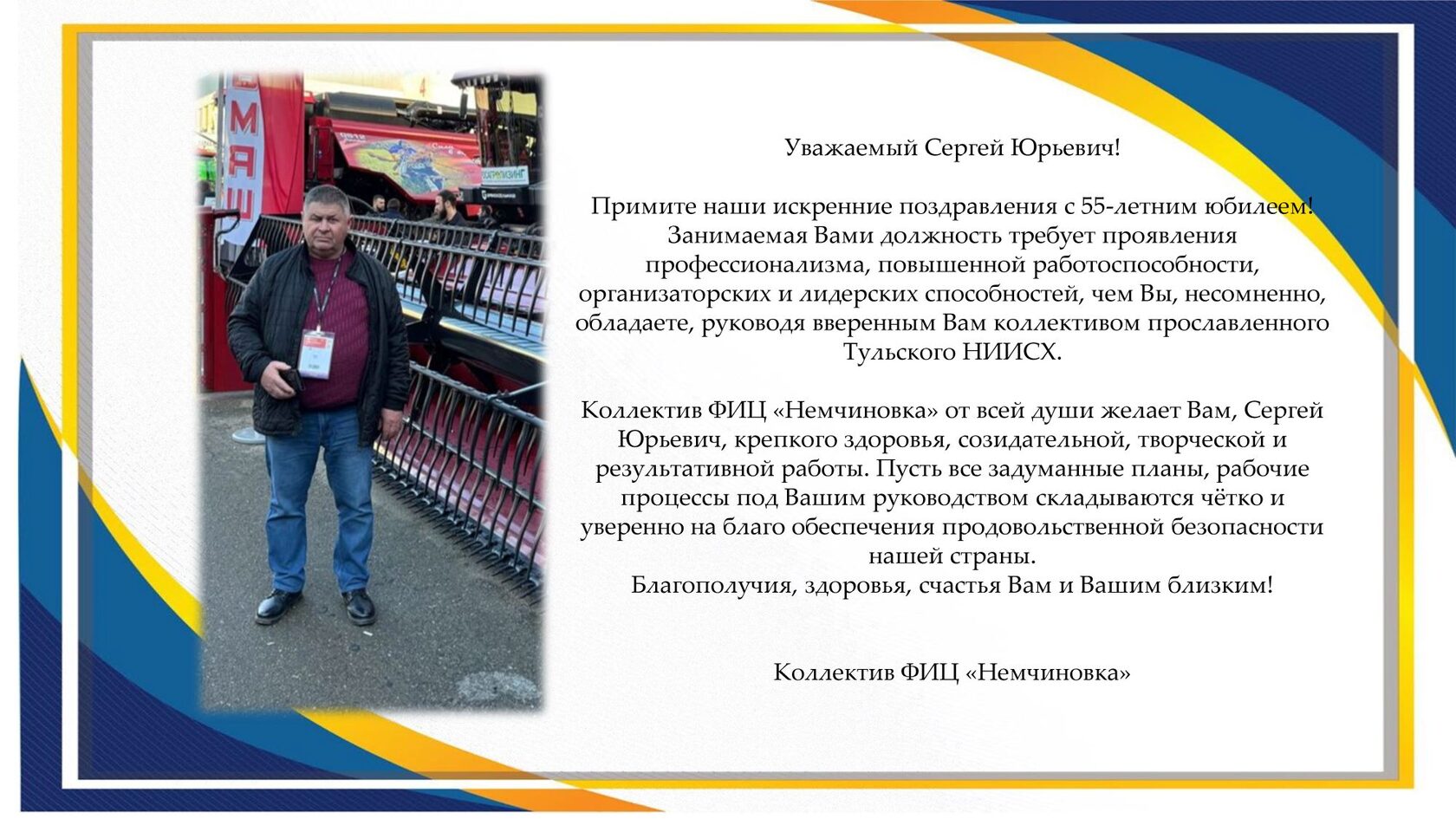 Уважаемый Сергей Юрьевич! Примите наши искренние поздравления с 55-летним юбилеем!