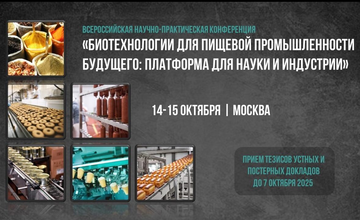 Институт молекулярной биологии им. В. А. Энгельгардта РАН совместно с Ассоциацией молекулярной, клеточной и синтетической биологии (АМКСБ) приглашает научных сотрудников, молодых исследователей и специалистов в области пищевой биотехнологии принять участие 14-15 октября 2025 года в I-ой Всероссийской научно-практической конференции «Биотехнологии для пищевой промышленности будущего: платформа для науки и индустрии».